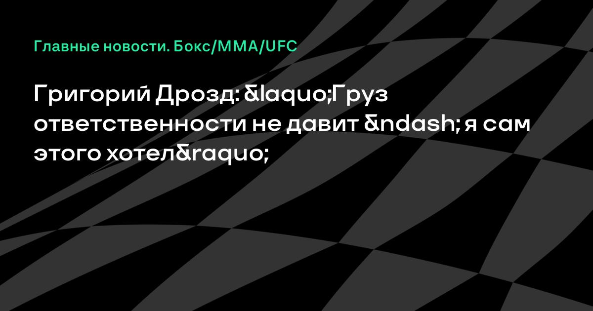 Григорий Дрозд: «Груз ответственности не давит – я сам этого хотел»