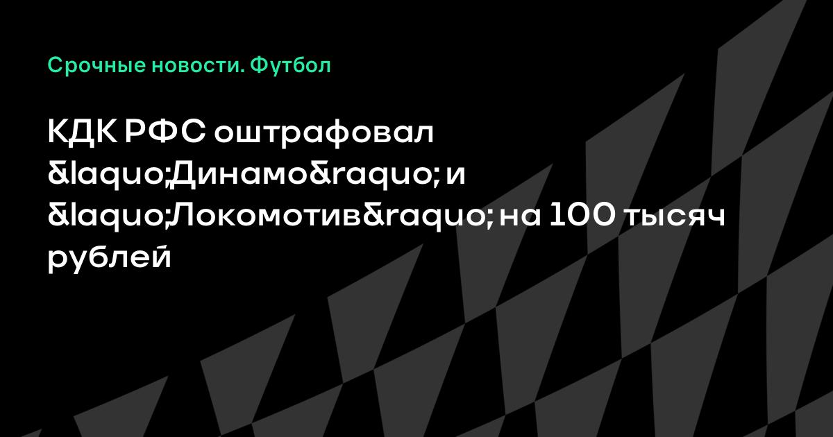 КДК РФС оштрафовал «Динамо» и «Локомотив» на 100 тысяч рублей