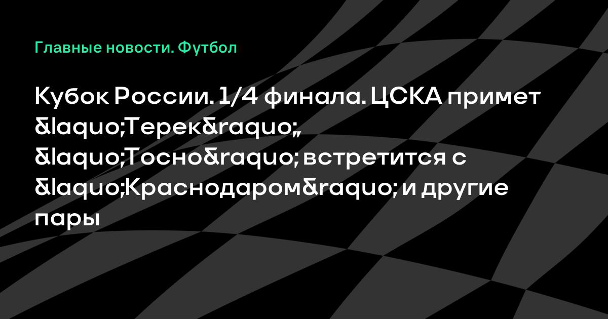 Кубок России. 1/4 финала. ЦСКА примет «Терек», «Тосно» встретится с «Краснодаром» и другие пары
