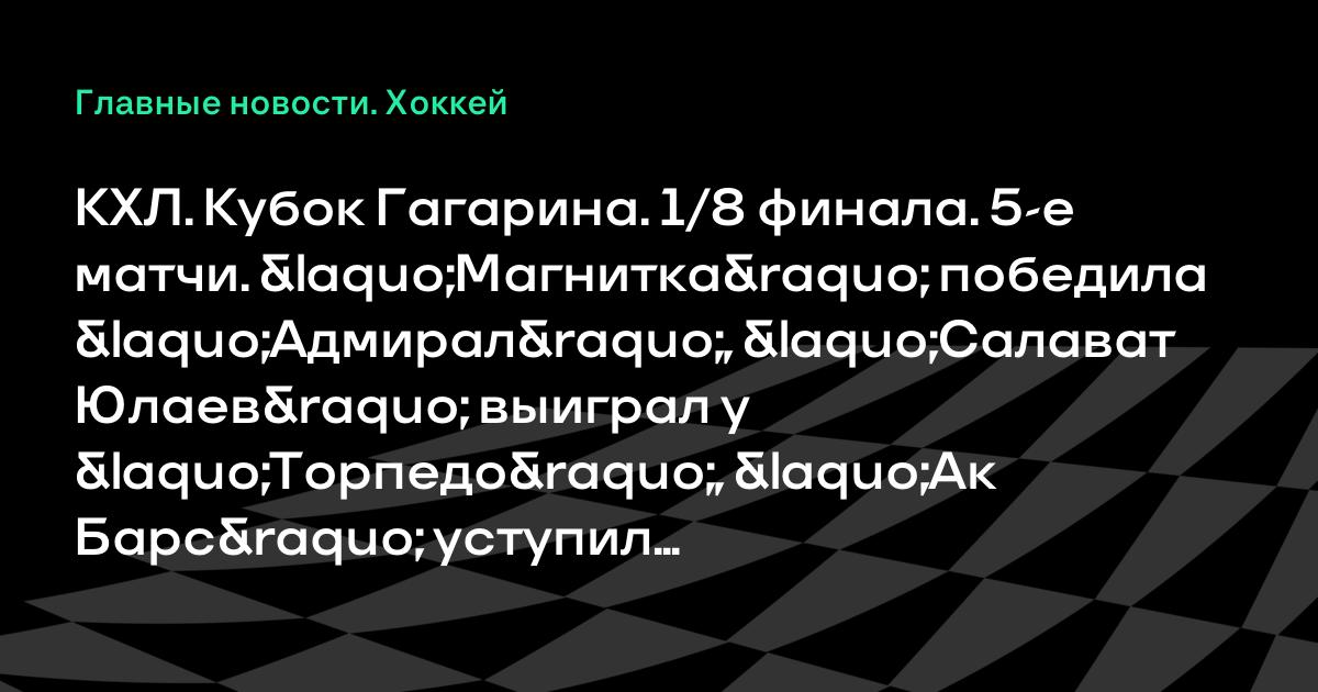 КХЛ. Кубок Гагарина. 1/8 финала. 5-е матчи. «Магнитка» победила «Адмирал», «Салават Юлаев» выиграл у «Торпедо», «Ак Барс» уступил «Сибири»