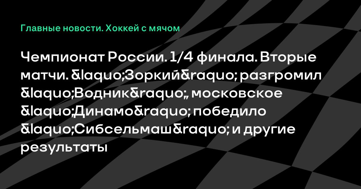 Чемпионат России. 1/4 финала. Вторые матчи. «Зоркий» разгромил «Водник», московское «Динамо» победило «Сибсельмаш» и другие результаты