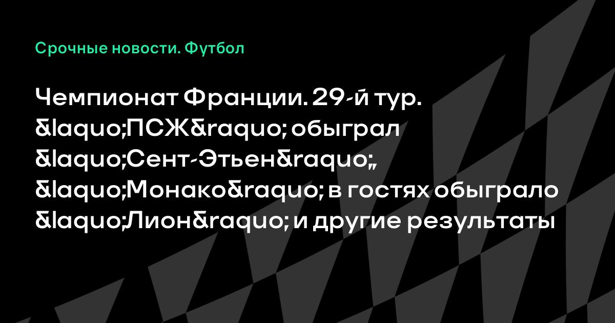 Чемпионат Франции. 29-й тур. «ПСЖ» обыграл «Сент-Этьен», «Монако» в гостях обыграло «Лион» и другие результаты