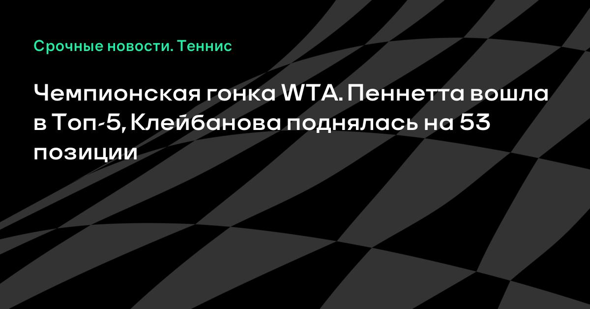 Чемпионская гонка WTA. Пеннетта вошла в Топ-5, Клейбанова поднялась на 53 позиции
