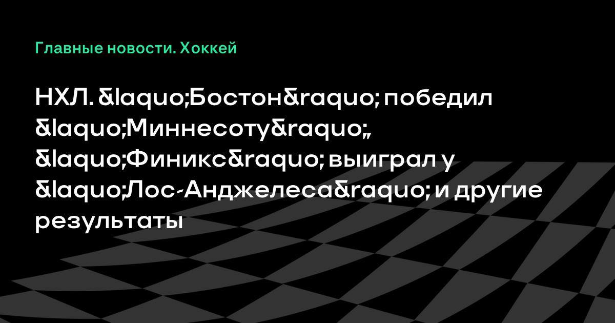 НХЛ. «Бостон» победил «Миннесоту», «Финикс» выиграл у «Лос-Анджелеса» и другие результаты
