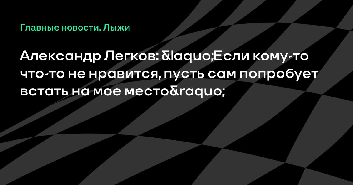 Александр Легков: «Если кому-то что-то не нравится, пусть сам попробует встать на мое место»