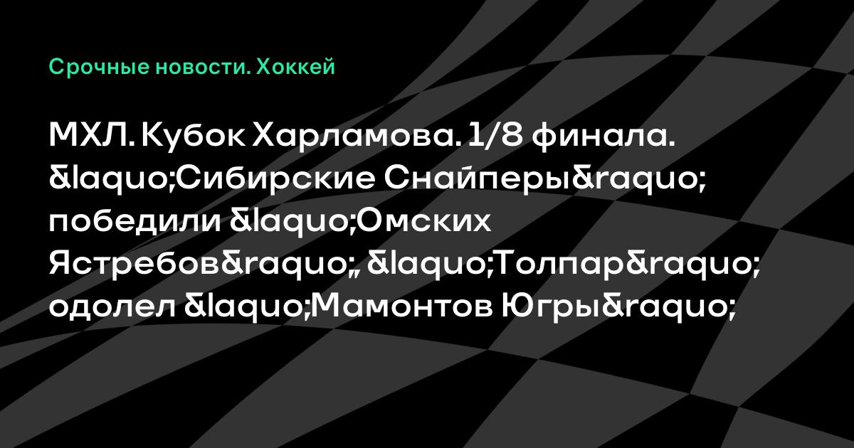 МХЛ. Кубок Харламова. 1/8 финала. «Сибирские Снайперы» победили «Омских Ястребов», «Толпар» одолел «Мамонтов Югры»