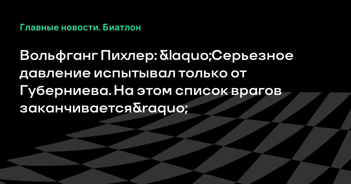 Вольфганг Пихлер: «Серьезное давление испытывал только от Губерниева. На этом список врагов заканчивается»