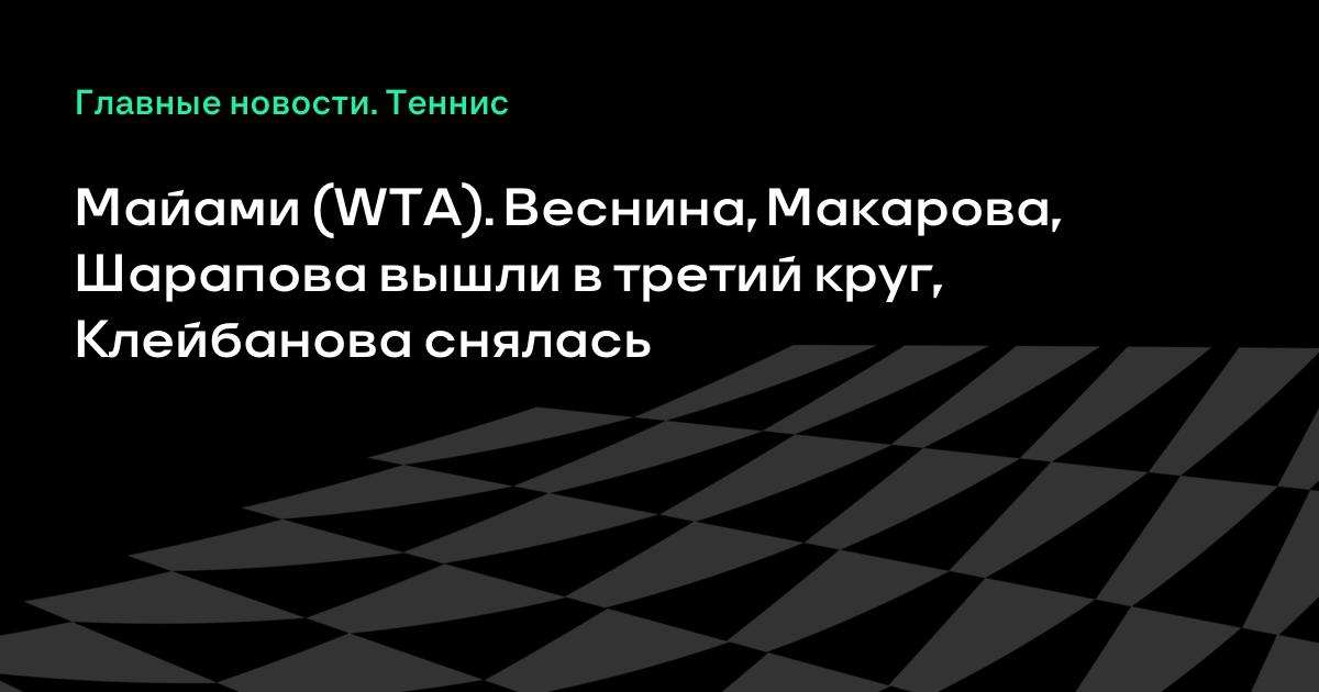 Майами (WTA). Веснина, Макарова, Шарапова вышли в третий круг, Клейбанова снялась