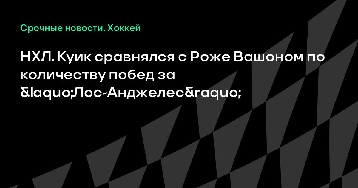 НХЛ. Куик сравнялся с Роже Вашоном по количеству побед за «Лос-Анджелес»