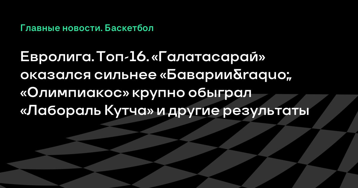 Евролига. Топ-16. «Галатасарай» оказался сильнее «Баварии», «Олимпиакос» крупно обыграл «Лабораль Кутча» и другие результаты