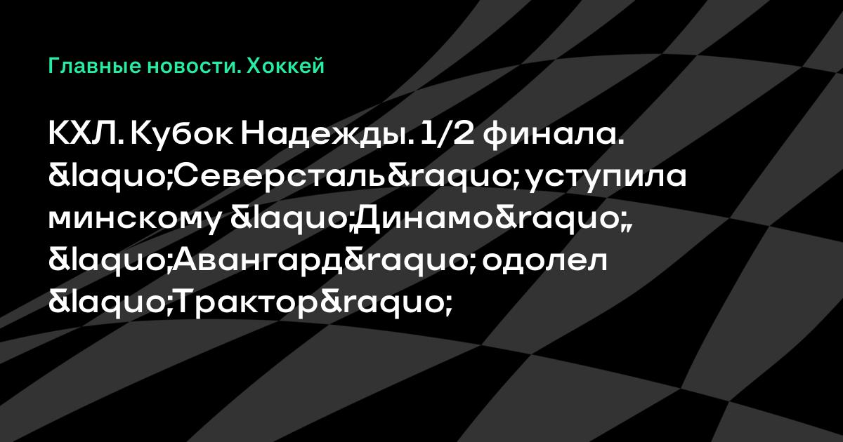 В рамках полуфинальных серий Кубка Надежды «Северсталь» уступила минскому «Динамо» (2:3 ОТ), а «Авангард» обыграл «Трактор» (3:2 ОТ).
