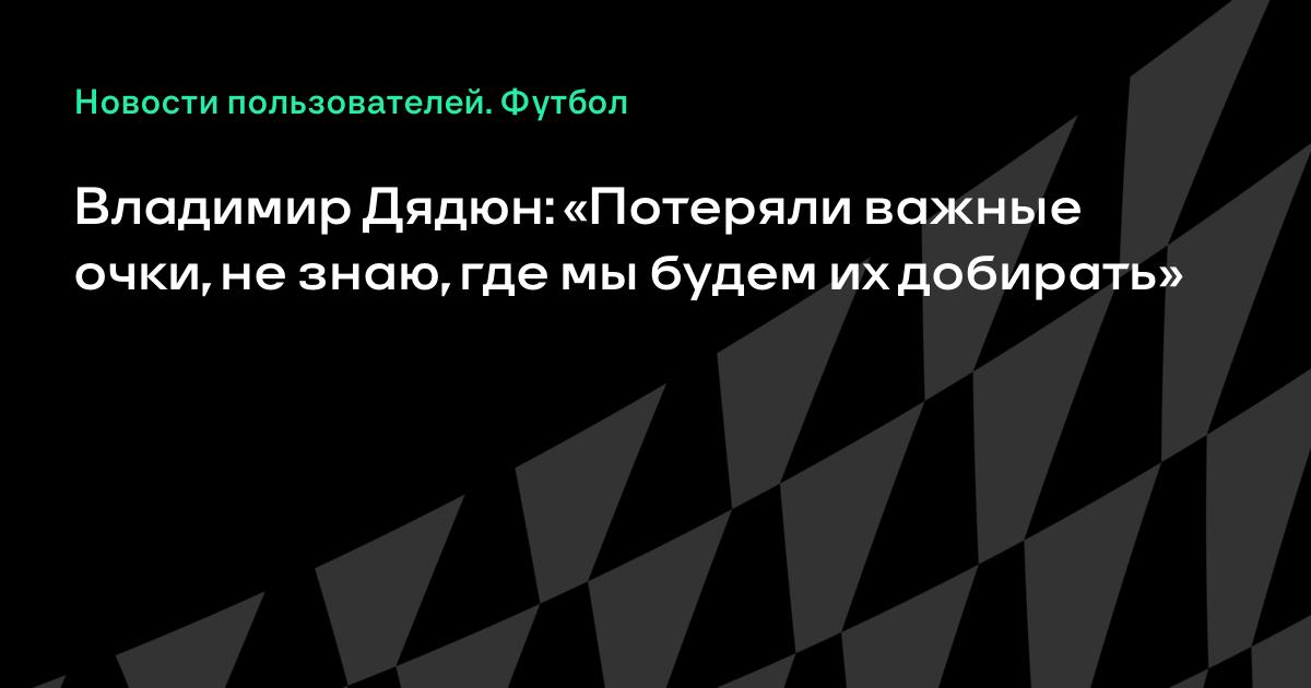 Владимир Дядюн: «Потеряли важные очки, не знаю, где мы будем их добирать»