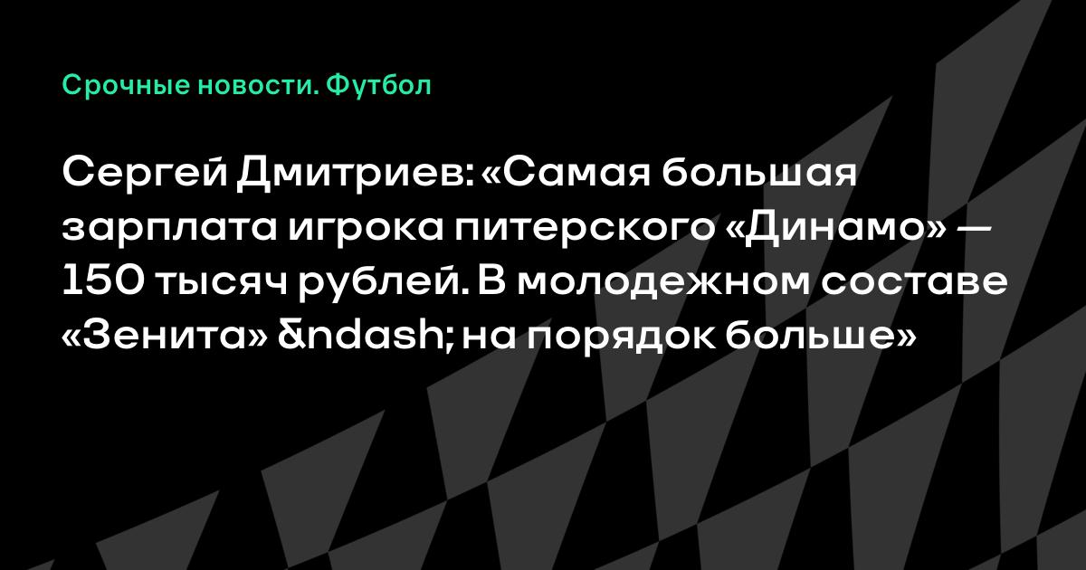 Сергей Дмитриев: «Самая большая зарплата игрока питерского «Динамо» — 150 тысяч рублей. В молодежном составе «Зенита» – на порядок больше»