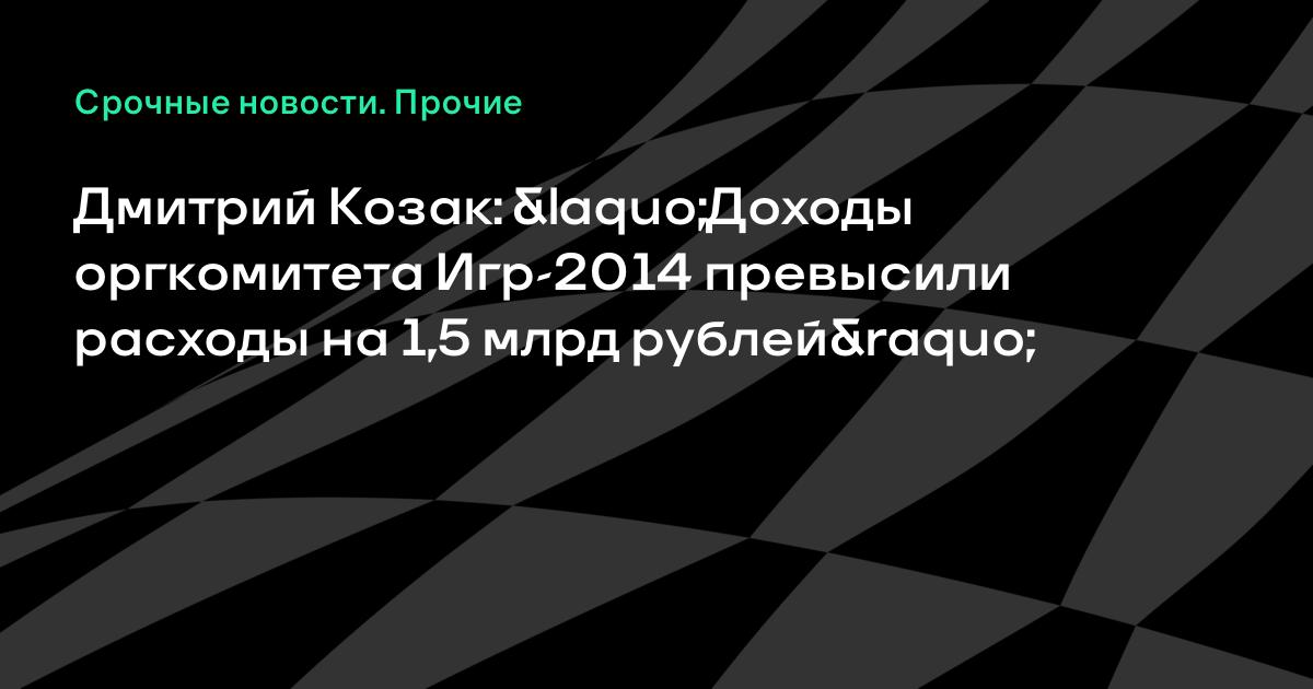 Вице-премьер Дмитрий Козак на заседании совета при президенте России по развитию физической культуры и спорта сообщил, что доходы оргкомитета зимних Олимпийских игр в Сочи превысили расходы на 1,5 млрд рублей