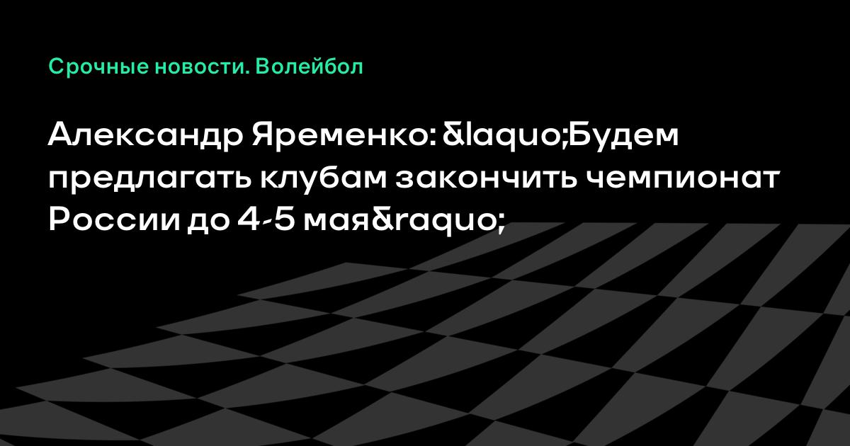 «29 мая уже начинается Мировая лига, и нам уходить за 15 мая никак не хотелось бы. Скорее всего, будем предлагать клубам такой вариант, чтобы закончить чемпионат России до клубного чемпионата, то есть 4-5 мая.