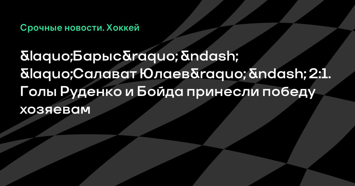 «Барыс» – «Салават Юлаев» – 2:1. Голы Руденко и Бойда принесли победу хозяевам
