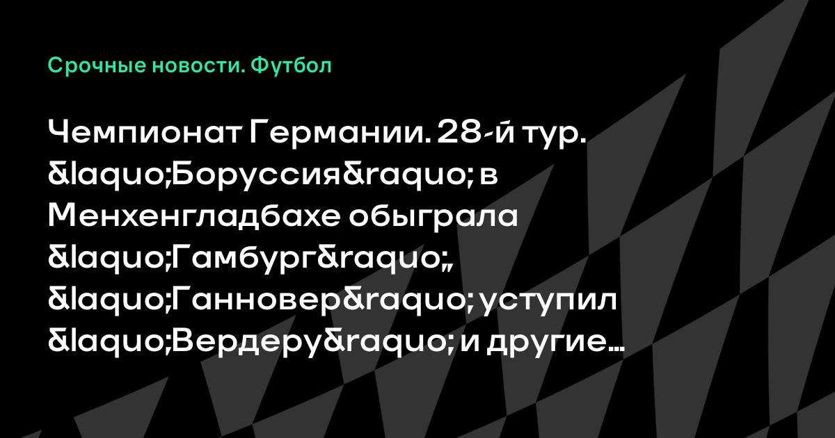 Чемпионат Германии. 28-й тур. «Боруссия» в Менхенгладбахе обыграла «Гамбург», «Ганновер» уступил «Вердеру» и другие результаты