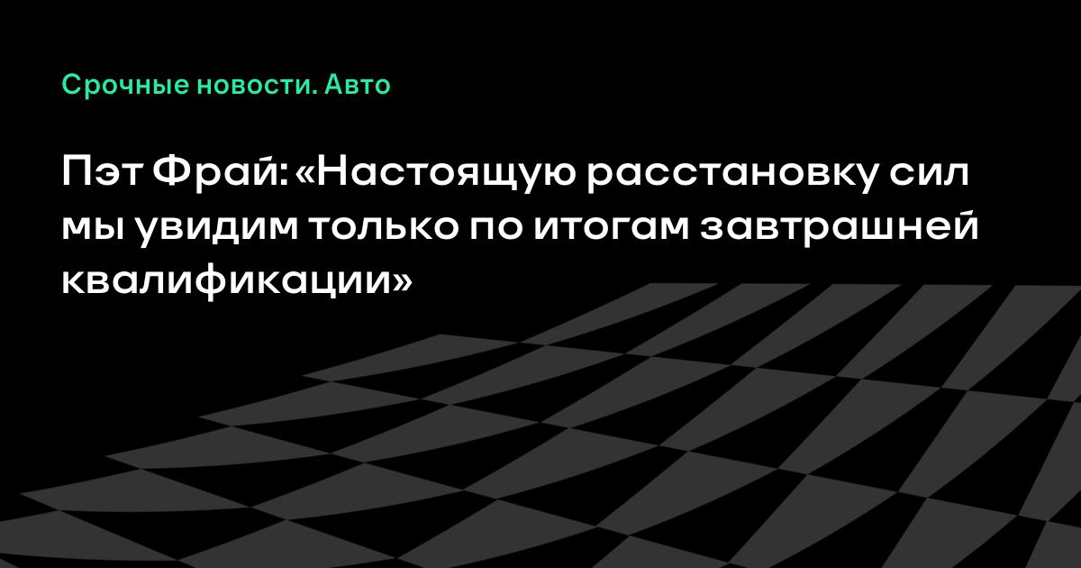 Пэт Фрай: «Настоящую расстановку сил мы увидим только по итогам завтрашней квалификации»