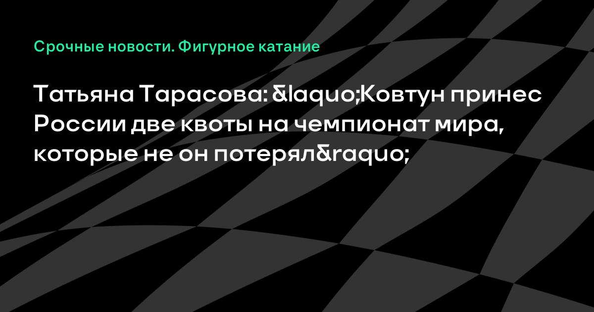 Татьяна Тарасова: «Ковтун принес России две квоты на чемпионат мира, которые не он потерял»