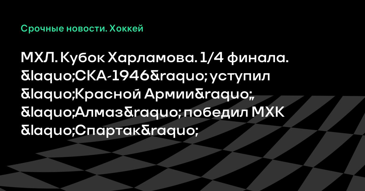 МХЛ. Кубок Харламова. 1/4 финала. «СКА-1946» уступил «Красной Армии», «Алмаз» победил МХК «Спартак»