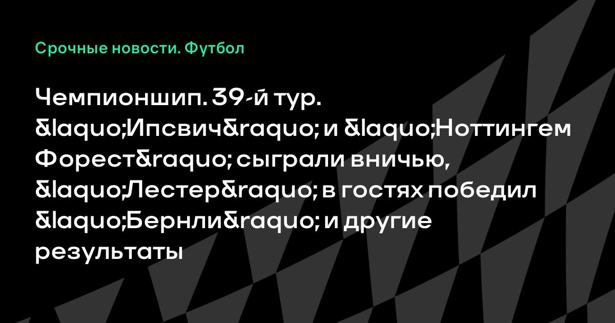 Чемпионшип. 39-й тур. «Ипсвич» и «Ноттингем Форест» сыграли вничью, «Лестер» в гостях победил «Бернли» и другие результаты