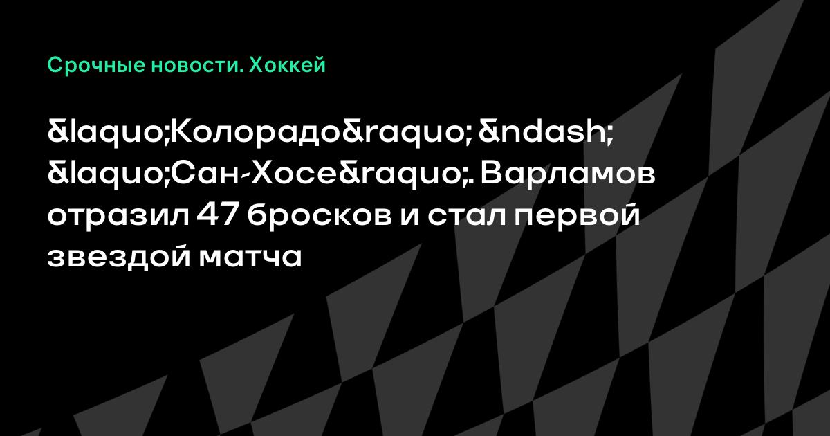 Вратарь «Колорадо» Семен Варламов, отразив 47 бросков по своим воротам, стал первой звездой матча регулярного чемпионата НХЛ против «Сан-Хосе» (3:2).
