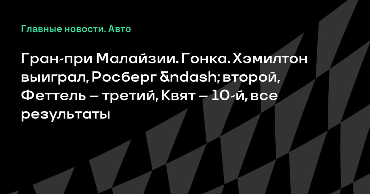 Гран-при Малайзии. Гонка. Хэмилтон выиграл, Росберг – второй, Феттель – третий, Квят – 10-й, все результаты