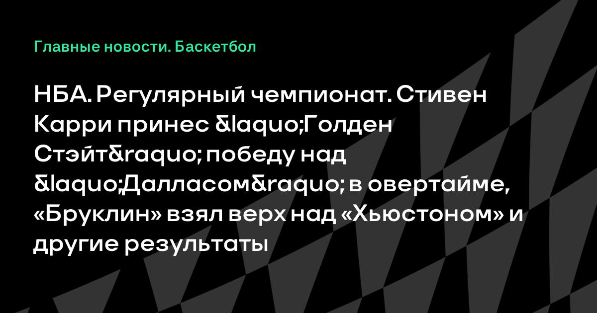 НБА. Регулярный чемпионат. Стивен Карри принес «Голден Стэйт» победу над «Далласом» в овертайме, «Бруклин» взял верх над «Хьюстоном» и другие результаты Сегодня в рамках регулярного чемпионата НБА состоялись три матча. «Бруклин» продлил серию домашних побед, взяв верх над «Хьюстоном» (105:96). Бросок Стивена Карри на последней секунде овертайма принес «Голден Стэйт» победу над конкурентом в борьбе за место в плей-офф – «Далласом» (122:120).