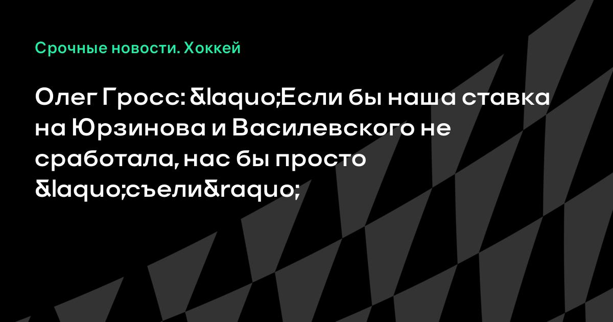 Олег Гросс: «Если бы наша ставка на Юрзинова и Василевского не сработала, нас бы просто «съели»