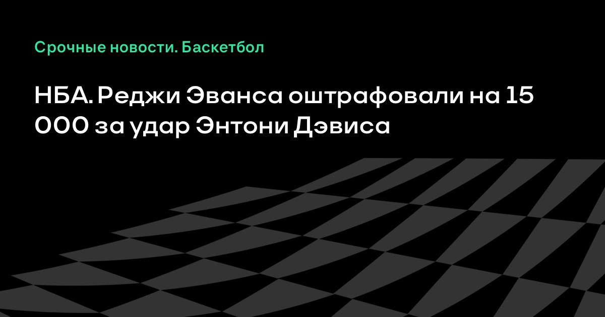 Лига оштрафовала форварда «Сакраменто» Реджи Эванса на 15 000 долларов за удар Энтони Дэвиса («Новый Орлеан») локтем в лицо, сообщает NBA.com.