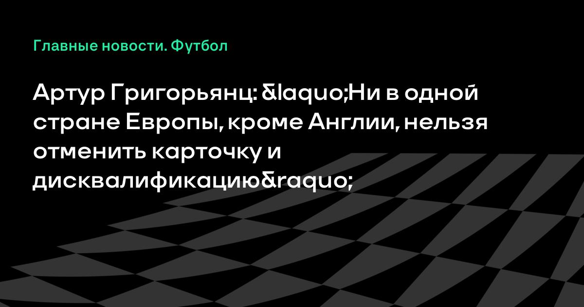 Артур Григорьянц: «Ни в одной стране Европы, кроме Англии, нельзя отменить карточку и дисквалификацию»