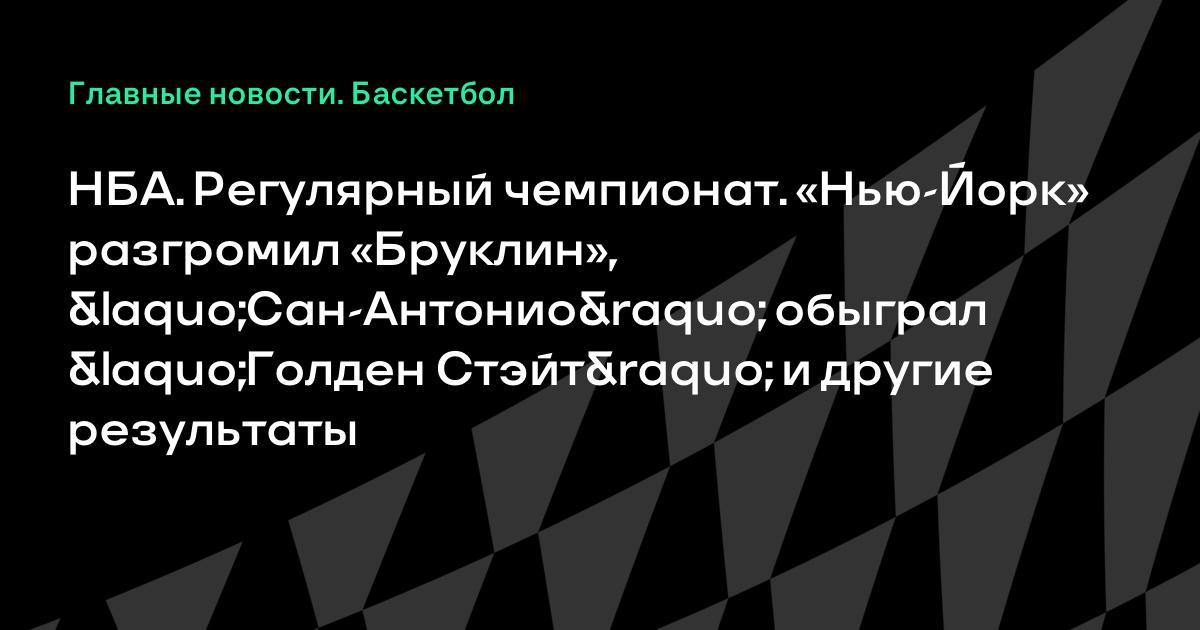 НБА. Регулярный чемпионат. «Нью-Йорк» разгромил «Бруклин», «Сан-Антонио» обыграл «Голден Стэйт» и другие результаты Сегодня в рамках регулярного чемпионата НБА пройдут 13 матчей. «Сан-Антонио» одержал 19-ю победу подряд, взяв верх в домашней игре с «Голден Стэйт» (111:90). В нью-йоркском дерби «Никс» разгромили «Нетс» со счетом 110:81.