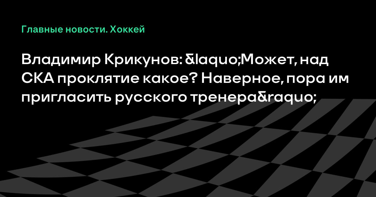 Владимир Крикунов: «Может, над СКА проклятие какое? Наверное, пора им пригласить русского тренера»