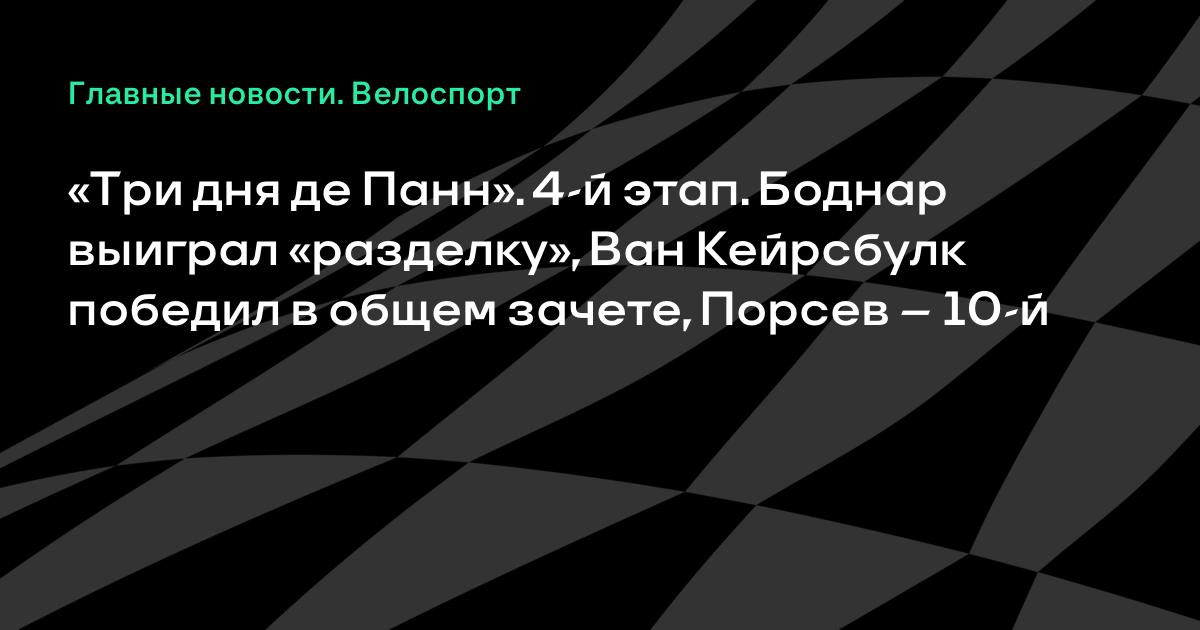 «Три дня де Панн». 4-й этап. Боднар выиграл «разделку», Ван Кейрсбулк победил в общем зачете, Порсев – 10-й