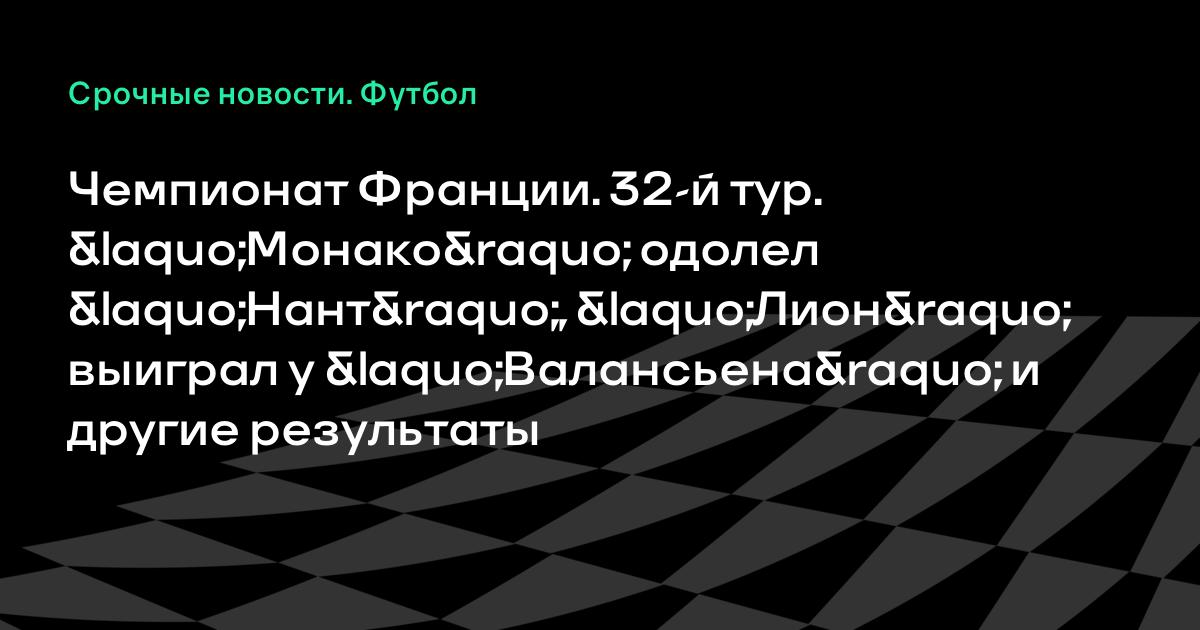 Чемпионат Франции. 32-й тур. «Монако» одолел «Нант», «Лион» выиграл у «Валансьена» и другие результаты