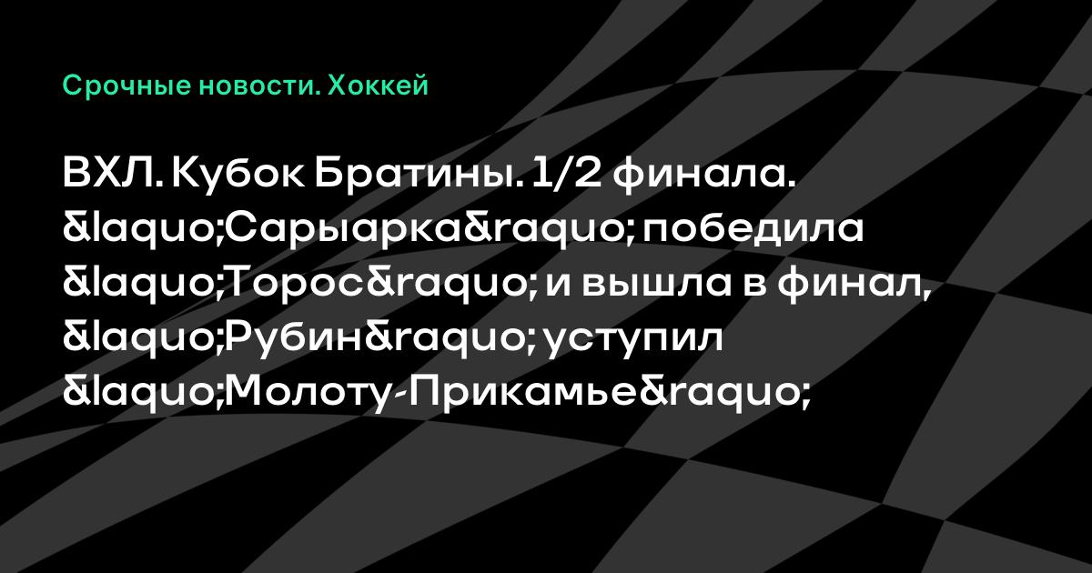 Сегодня в рамках 1/2 финала Кубка Братины состоятся очередные матчи. «Сарыарка» победила «Торос» в четвертом матче серии (2:0) и вышла в финал, а «Рубин» уступил «Молоту-Прикамье» (1:4).