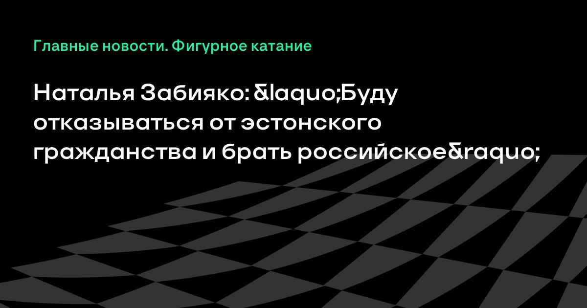 Я благодарна эстонской федерации, но пора идти дальше. Теперь я буду отказываться от эстонского гражданства и брать российское», – приводит слова Забияко «Р-Спорт».