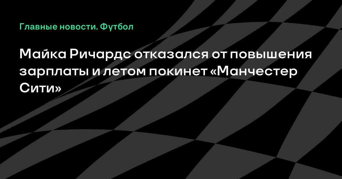 Английский защитник «Манчестер Сити» Майка Ричардс не стал подписывать с клубом новый контракт на улучшенных финансовых условиях и летом покинет «горожан», сообщает The Guardian.