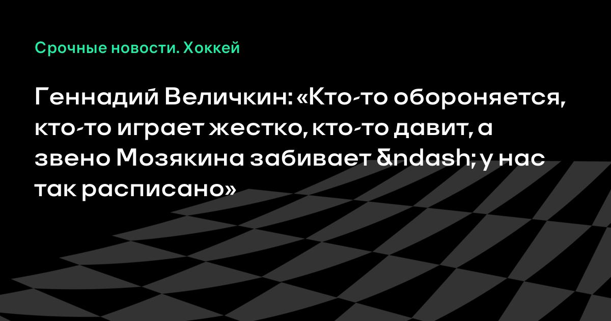 Геннадий Величкин: «Кто-то обороняется, кто-то играет жестко, кто-то давит, а звено Мозякина забивает – у нас так расписано»