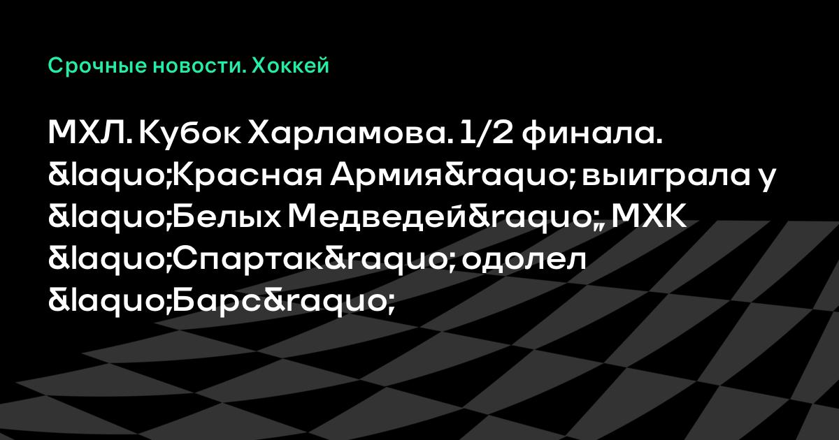 Сегодня в рамках 1/2 финала Кубка Харламова прошли очередные матчи. «Спартак» в овертайме одолел «Барс» (5:4 ОТ), а «Красная Армия» победила «Белых Медведей» (4:3).