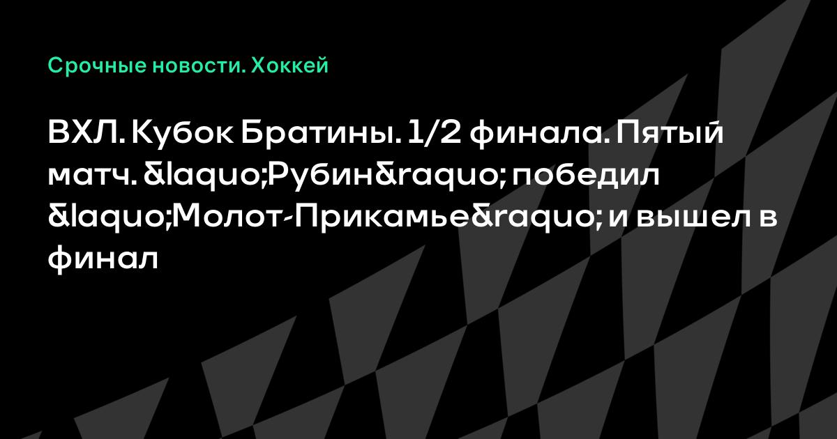 Сегодня в рамках 1/2 финала Кубка Братины «Молот-Прикамье» вновь уступил «Рубину» (1:2 ОТ) и таким образом, проиграл серию (1-4). Тюменский клуб вышел в финал.