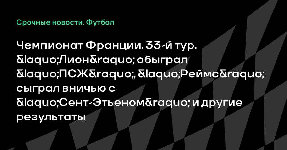 Чемпионат Франции. 33-й тур. «Лион» обыграл «ПСЖ», «Реймс» сыграл вничью с «Сент-Этьеном» и другие результаты