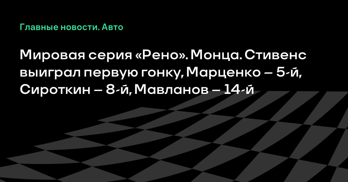 Мировая серия «Рено». Монца. Стивенс выиграл первую гонку, Марценко – 5-й, Сироткин – 8-й, Мавланов – 14-й