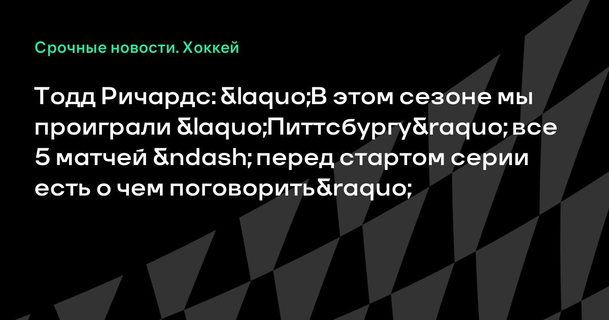 Тодд Ричардс: «В этом сезоне мы проиграли «Питтсбургу» все 5 матчей – перед стартом серии есть о чем поговорить»