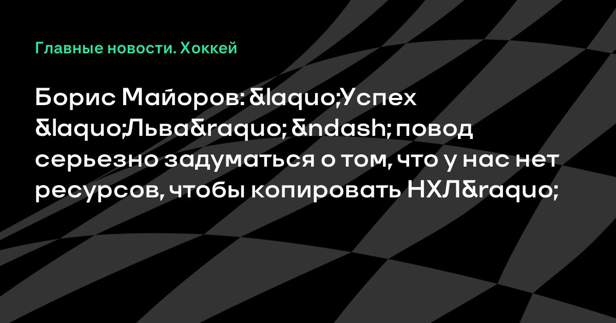 Борис Майоров: «Успех «Льва» – повод серьезно задуматься о том, что у нас нет ресурсов, чтобы копировать НХЛ»