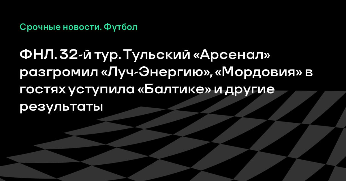 ФНЛ. 32-й тур. Тульский «Арсенал» разгромил «Луч-Энергию», «Мордовия» в гостях уступила «Балтике» и другие результаты