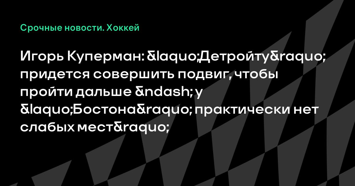 Хоккейный эксперт Игорь Куперман поделился мнением о предстоящей серии первого раунда Кубка Стэнли между «Бостоном» и «Детройтом».