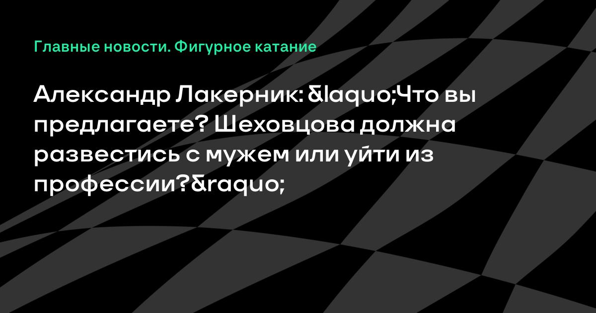 Александр Лакерник: «Что вы предлагаете? Шеховцова должна развестись с мужем или уйти из профессии?»