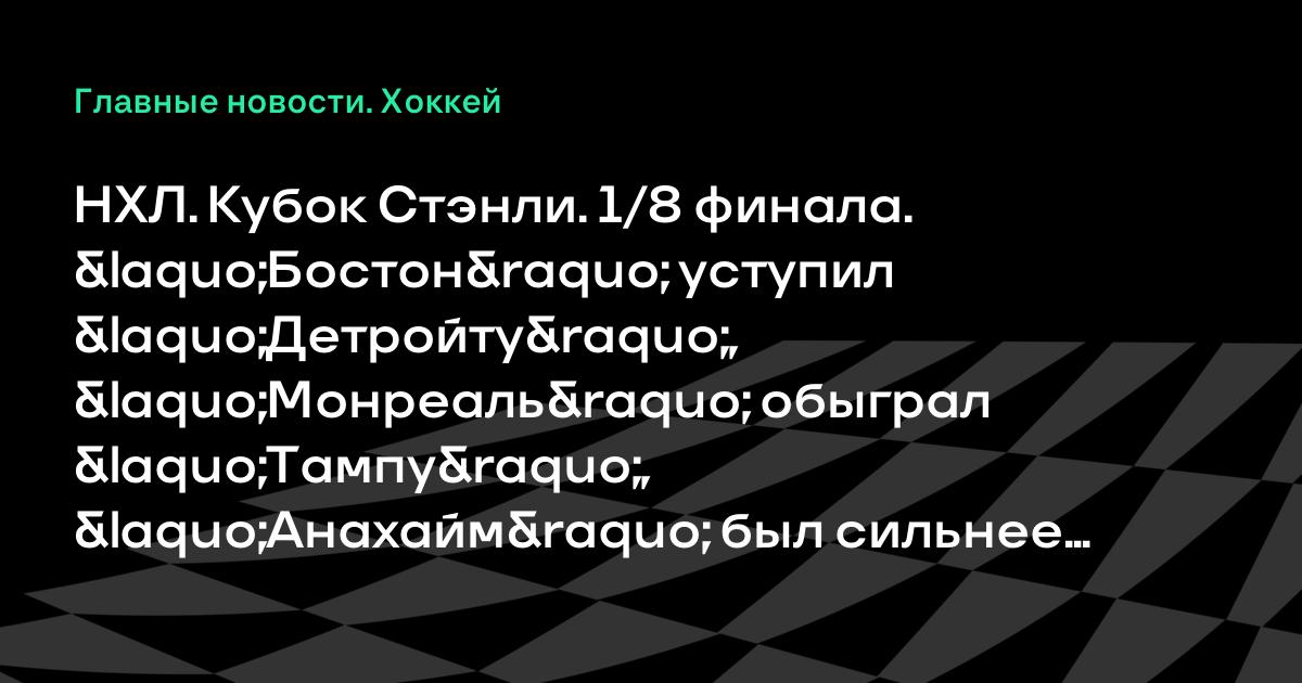 НХЛ. Кубок Стэнли. 1/8 финала. «Бостон» уступил «Детройту», «Монреаль» обыграл «Тампу», «Анахайм» был сильнее «Далласа»