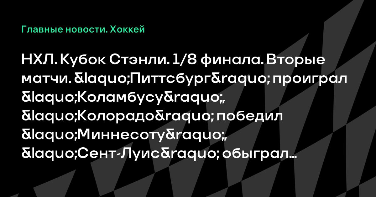 НХЛ. Кубок Стэнли. 1/8 финала. Вторые матчи. «Питтсбург» проиграл «Коламбусу», «Колорадо» победил «Миннесоту», «Сент-Луис» обыграл «Чикаго»